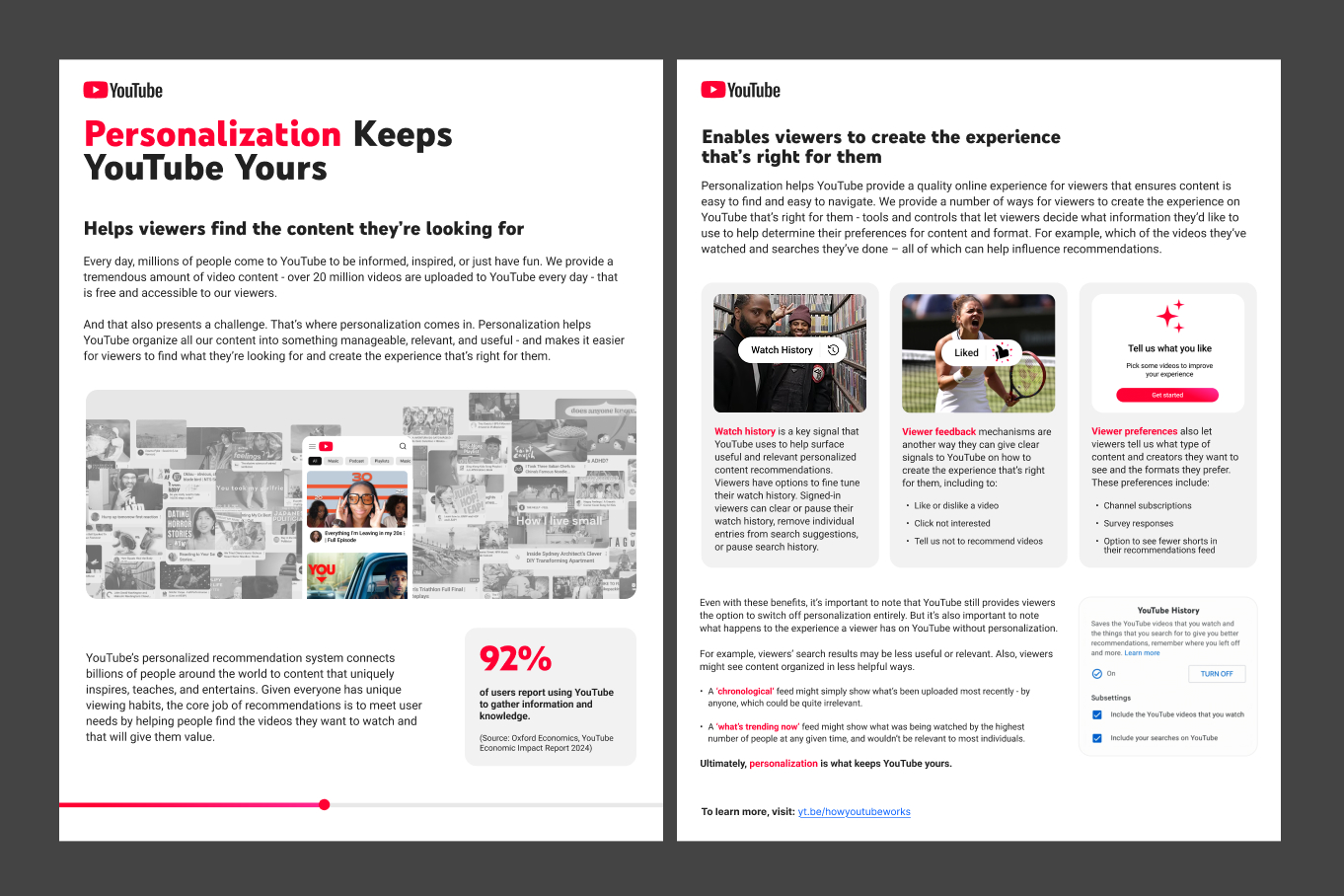 Designed structured communication documents articulating personalization initiatives within YouTube’s brand system.